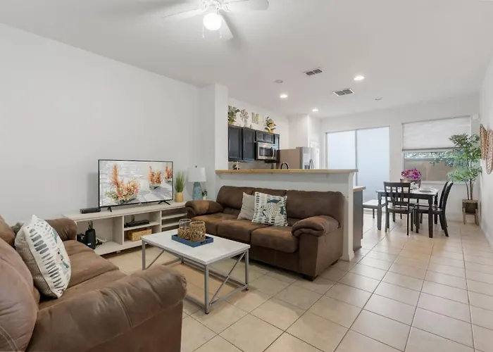 Pousada Cozy 3Bdr House Near Disney - Al Orlando está localizada a 4.7 km do Campo de Golfe Celebration, dando acesso a vários pontos turísticos próximos. Oferecendo parque de estacionamento privado gratuito, bem como Wi-Fi, esta propriedade está situada no bairro Celebration em Orlando.
